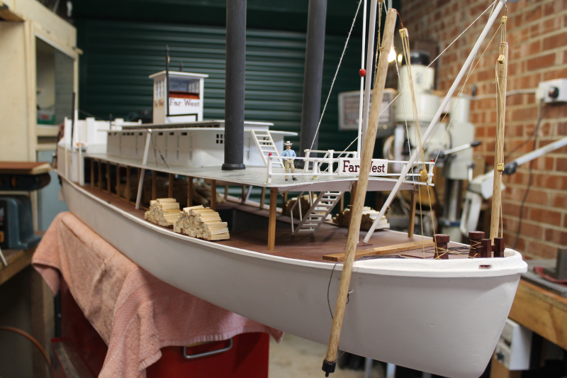 Far West was 190ft long and 33ft in beam. Unloaded, she had a draft of 20 inches, whilst loaded to her maximum of 398 tons her draft was 4ft 6 inches. She was built in 1870 and after an eventful career, was lost in 1883 after she hit a snag in the river and sank.